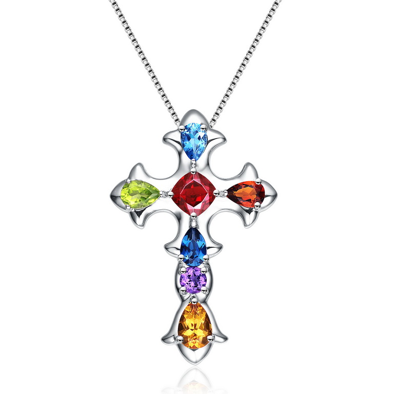 18K白金 天然彩寶吊墜