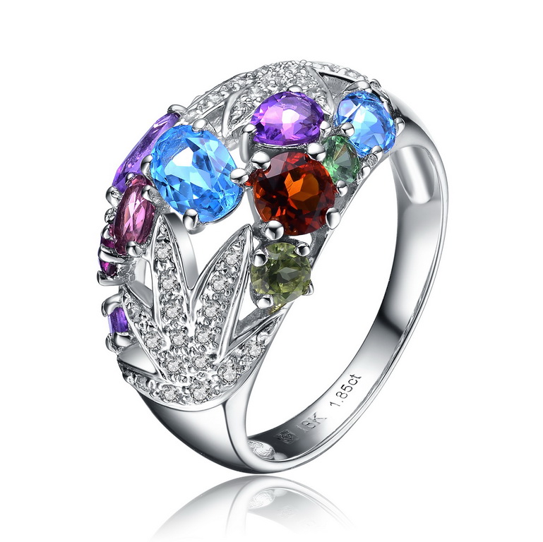 18K白金 天然彩寶戒子