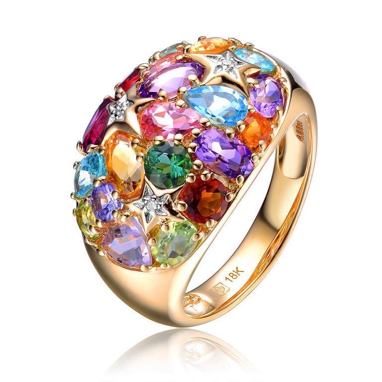 18K黃金 天然彩寶戒子